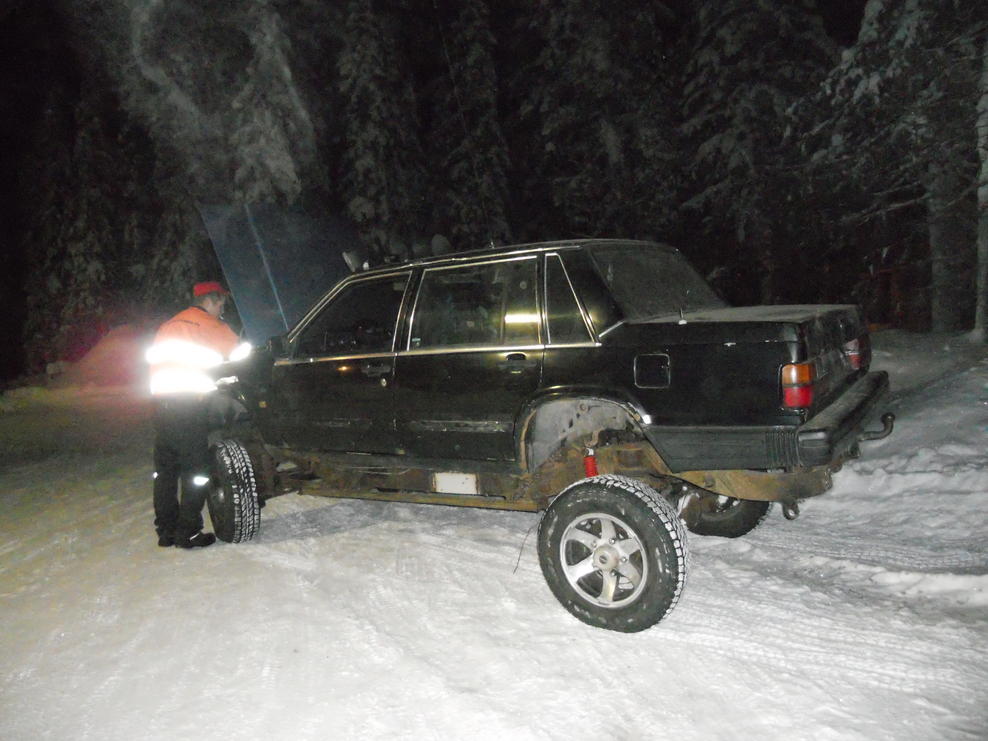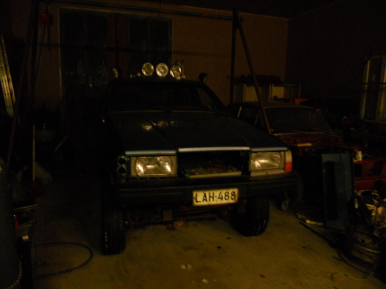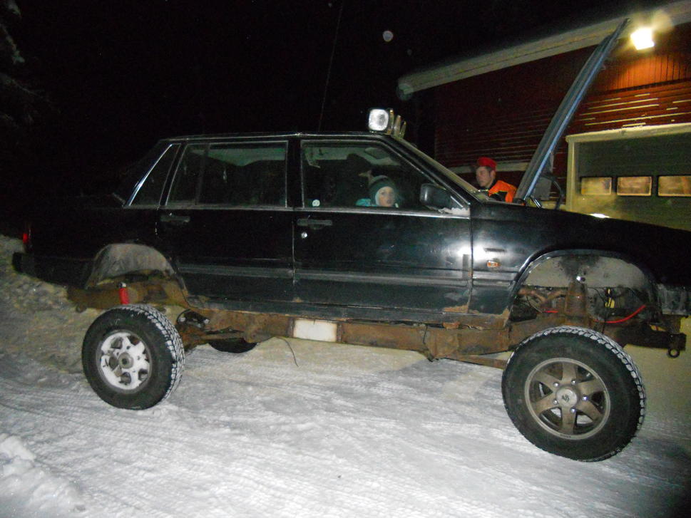 Joo no nyt alottelen tänne tämmöstä ku aattelin että saisin vähän konkareiden mielipiteitä ja ehdotuksia, sekä vähän erilaista vekotinta tuoda esille täälläkin.. Elikkäs kyseessä on Range rooveri vuosimallia -73 ja Volvo 740 vuosimallia-87 itsellä on viis turpotiisselli seittensatasta ynnä muuta rosetta.. mutta joo tuosa yhen kaverin kans hallissa potkimme rangen runkoa jossa oli paikoillaan enää aksilat ja tekniikka .Sitte siinä vieressä lepäs se lankku volvo niin katottiin siinä että akseli väli on aikalailla sama(paikoilleen asettelussa huomattiin että aika kaukana ovat toisistaan) no siinä vaiheessa vielä sinisilmäisinä uskottiin että tämä on nätti homma nakataan vaan volvon koppa tuohon rankun roville.. noh romut vietiin kaverin halliin joka on lämmin ja alettiin hommiin otettiin rungosta vaihekepit sun muut pois vielä tässä vaiheessa ja korotettiin runkoa 10cmsiis jousten alle tallaa takaa boge pois ja taivutettiin tuki varsia takaa että kartaanin kulmat pienenee. volvosta leikeltiin oikeastaan koko keula pois vain loka suojat jäi paikoilleen.. Sitte kartanolle ja JCB käyntiin ja nostimma vollen korin lankku pedille rangen rungon päälle ja siitä se ajatus sitten lähti.. ne ei puhunu ollenkaan samaa kieltä.. jouduttiin jatkamaan rangen runkoa 35,5 senttiä ja kartaania 37senttiä että akselit sattu pyörän kaariin koko koje lauta veke ja tulipeltia ala reunasta 15centtiä sisään päin ja vaihteiston tunnelia avarammaksi että voidaan laskeutua pari kerrosta alaspäin sen korin kanssa kori alkoi olla korossaan niin iskimmä korin kiinni runkoon.. pultti liitoksin. keskellä koria on sellainen väli palkki joka antaa korin elää niin paljon ku haluaa.. hyökkäsimme keulan kimppuun seuraavaksi noh muuan päivä siinä kulu että saatiin syylärit sun muut istumaan keulaan ja etu valot ja volvon omat puskurit ymym keula näyttää siis orkkis volvolta jossa on rangen maski:D keulan ja konepellin luovutti eräs toinen yksilö volvo kuitenni.. nyt pitäis alkaa etenemään mitä kannattaa laittaa renkaiksi ym ym tästä tulee siis vaan lelu eli ei mitään kahden tonnin rinkuloita tai ilma jousituksia sun muita kunhan ei ensimmäisellä hirvenhakureissulla oo niin tiukassa ettei valmettikaan auta elikkä mitä kannattaa rangeen tehdä että pääsee vähän huonommallakin uralla:D ja kuvia tulee kuhan kerkiän ottaa menee luultavasti viikonloppuun..