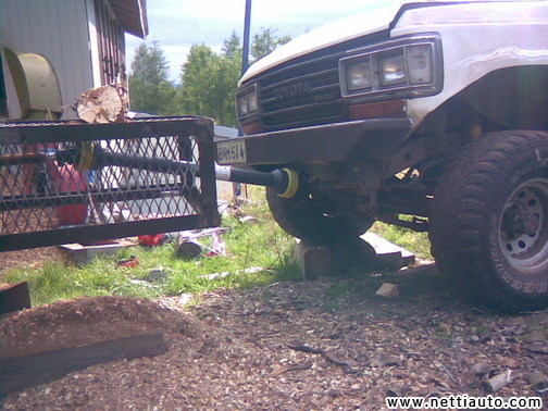 mutta vinssistä ei viiti luopuu niin oisko ideoita miten sais ns. ulosotto lähdön etu päähän? lähinnä onko mahdollista tehdä sellanen asennus ettei tarvis vinssin kardaania siirtää aina ulosotto akselin jatkoks sillon kun sen tarve ois. epäselvästi selitetty mutta jos jollain ois jotain idean tynkää.. |