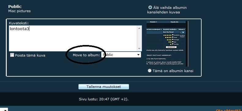 http://forums.offipalsta.com/picture...ictureid=76964 ******** Tuossa toinen... reittauksen skaala lontooksi. http://forums.offipalsta.com/picture...ictureid=76965 ******** Kolmas..kuva-albumin toiminnoissa. http://forums.offipalsta.com/picture...ictureid=76966 ******** Neljäs... kuva-albumin kommentointi toiminnoissa ("Note: your comment...") http://forums.offipalsta.com/picture...ictureid=77323 ******** Viides... profiilissa kontaktien käsittelyssä http://forums.offipalsta.com/picture...ictureid=76967 ******** Ja.. yksityisviesteissä on kai joku träkkäystoiminto http://forums.offipalsta.com/picture...ictureid=77005 ******** Ja.. noita yksityisviestejä voi kai tuhoillakkin http://forums.offipalsta.com/picture...ictureid=77006 ******** Ja.. olikos tää jo bongattu http://forums.offipalsta.com/picture...ictureid=77016 ******** Ja.. ignore listaa käyttää jo kaikki :) http://forums.offipalsta.com/picture...ictureid=77017 ******** Ja yv-kansion toimintoja http://forums.offipalsta.com/picture...ictureid=77050 ******** "Työkalut" valikosta löytyy tuollanen http://forums.offipalsta.com/picture...ictureid=77051 ******** Profiilin sigun toiminnot http://forums.offipalsta.com/picture...ictureid=77052 ******** Tää taitaa löytyä topikkilistauksen lopusta http://forums.offipalsta.com/picture...ictureid=77153 ******** Tää taas profilin avattaren toiminnoista http://forums.offipalsta.com/picture...ictureid=77197 ******** Ja viimeinen... tästä reply ikkunastakin löytyy http://forums.offipalsta.com/picture...ictureid=77324 |