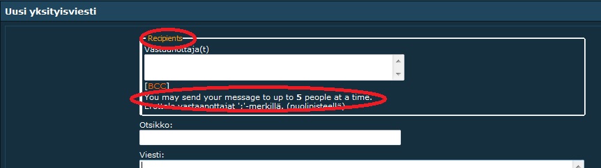 http://forums.offipalsta.com/picture...ictureid=77155 Käännösehdotelma edelliseen: Näytä "uusi yksityisviesti" pop-up Lähettäessäsi yksityisviestiä keskustelupalsta voi tallentaa kopion lähetettyjen viestiesi kansioon. X Tallenna kopio lähetetyistä yksityisviesteistä lähetettyjen viestien kansioon Vierailijaviestit Tällä keskustelupalstalla on käytössä vierailijaviestijärjestelmä joka sallii jäsenien lähettää vierailijaviestejä toisilleen julkisesti. Jos haluat saada vierailijaviestejä, voit sallia sen X Salli vierailijaviestit Voit rajoittaa Vierailijaviestit koskemaan vain moderaattoreita ja kontaktejasi X Rajoita Vierailijaviestien käyttö moderaattoreille ja kontakteillesi Ja nämä muokkaukset on kakskielisiä: http://forums.offipalsta.com/picture...ictureid=77156 |