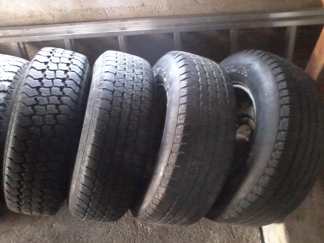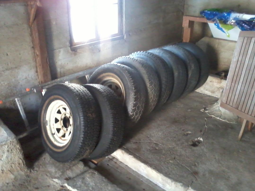 Renkaita vanteineen 8kpl. Eri merkkisiä, mutta kaikki saman kokoisia 235/75/15. Neljä vannetta ainakin samalla ET:llä loput kolme välimallinjätkän malleja. Näissä siis toyotan jako 6*139,7.