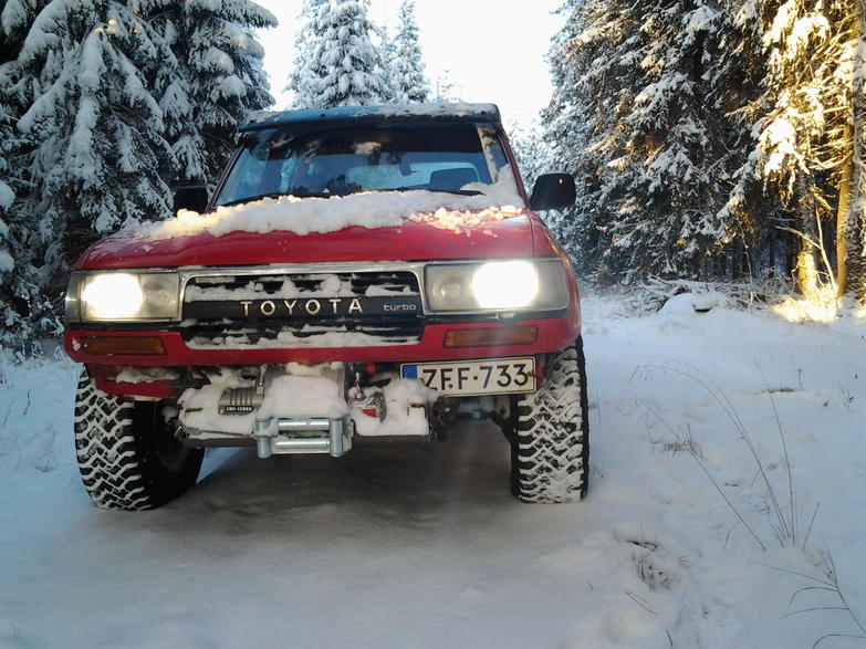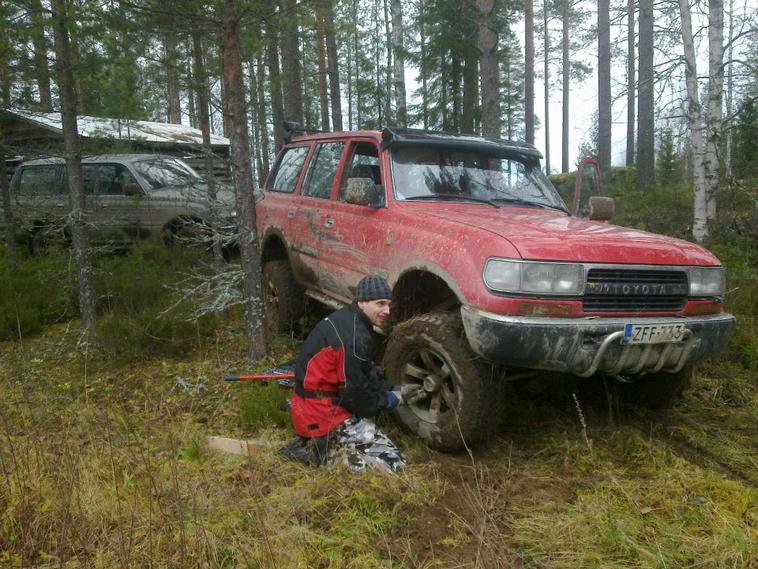 Ennen tätä kyllä oli isuzun campo mutta siitä hajosi etuperä heti alkuunsa. Lähtötilanne oli tämmönen nettiauton edullisimmasta päästä oleva reilu 700 tuhatta ajettu cruiseri. Liite 26346 Heti alkuun päästin maistamaan tätä offroadin ihanuutta eli murroksenvaihtoa. Liite 26349 Autossa oli alla ostaessa hankookin dynaprot ja takalukko ei toiminut joten ajo oli aika tikkusta, ja tuntui varsinkin lumien tultua siltä että henkilöautollakin on parempi etenemiskyky kun tämmösellä tonnikeijulla:D |