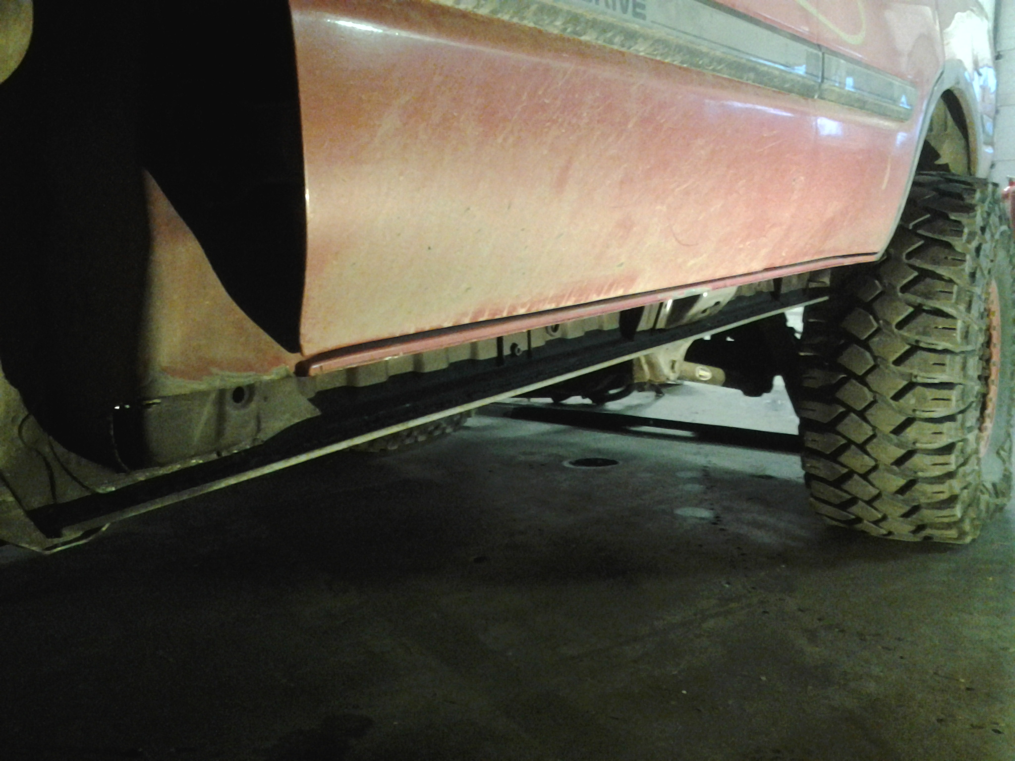 Juu elikkä jousiksi tuli 4" dobinsonin setti iskareineen ja casterpuslat. Takavakaajan nakkasin mäkeen kun ensimmisellä ajokerralla se repes irti niin turhaanhan se siellä on rajottamassa joustoja. Renkaiksi löytyi täältä offipalstan kautta melko uudet maxxis creepycrawlerit kokoa 37 14.5 15 ja bedlockvanteet ET -44 10x15. Korinkorotusta ei oo ja pahassa paikassa takarengas ottaa kaareen kiinni mutta tulee niin ulos nuilla vanteilla että hankaa kultuspinta kaareen niin ei oo ainakaan vielä aiheuttanu mitään tuhoa.