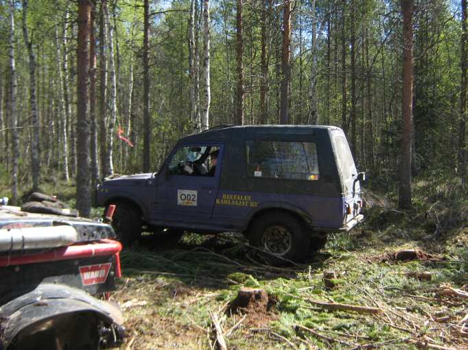 Kiitos tapahtuman sponsoreille Offroadtarvike ja Cross4wd sekä järjestäjille, maanomistajille, kilpakumppaneille ym.. Osanottajia oli harmittavan vähän mutta siinä mielessä mukavasti että melkein kaikilla oli mahdollisuus päästä palkinnoille. Isoimmat kiitokset vaimolle joka jatkoi suzukin hienoa kisahistoriaa . Hän ajoi ekaa kertaa tällaisessa suunnistus tapahtumassa ja keräs hienosti pisteitä. (Jospa sitä "talli aikaa" heruisi vastaisuudessa helpommin kun alkaa paremmin ymmärtämään tätä kokonaisuutta offroadista) Kisa meni meillä todella mukavasti muuten mutta aamulla heti ekalla alueella huomattiin että kemppilukko perästä oli tullut ihan normaali perä? Parikertaa käännettiin väärinpäin kääntynyt riipuke oikeinpäin. Niin ja se ainoa työvalo joka on takaovessa halusi halkaista lasinsa useaan osaan. Keltalan Kahlaajat Ry / Mustikka |