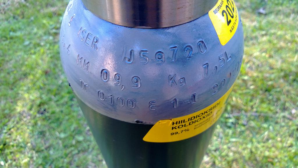 Eli käyttämättömät hiilidioksidipullo ja harris merkkinen hiilidioksidipullon mittari yhteensä 300 euroa. puh. 040-1854454