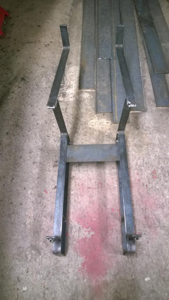 Päädyin tekemään telineen 5x30mm latasta jota sieltä täältä vahvistelin ja sen päälle sitten tankin kiinnityspangat 3x30mm latasta.