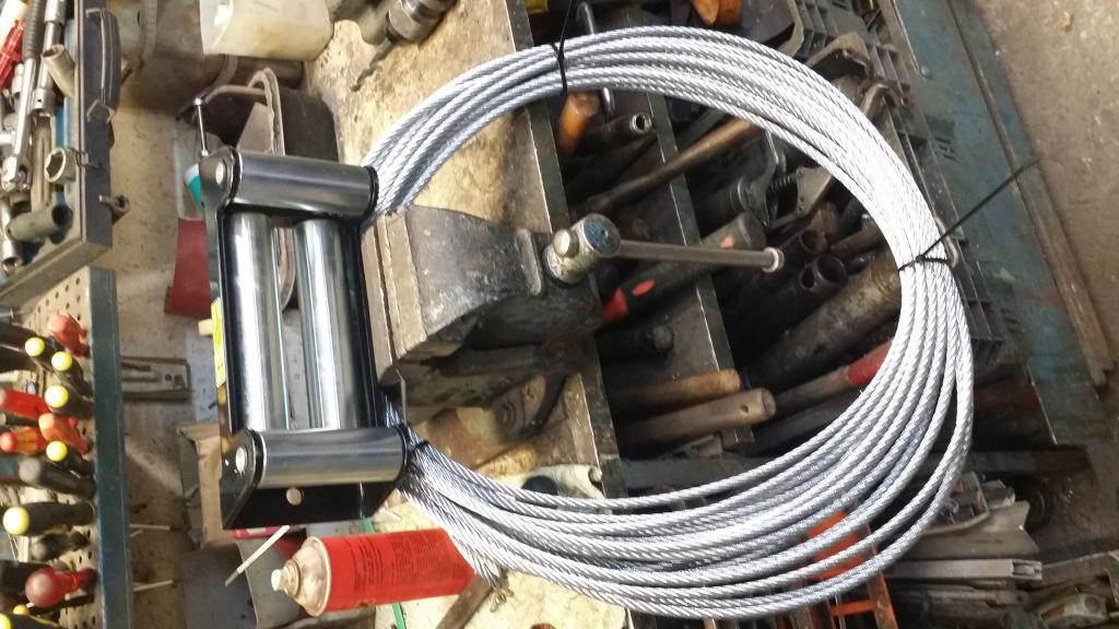 8mm vaijeri 13000lbs vinssistä. Muistaakseni 27m