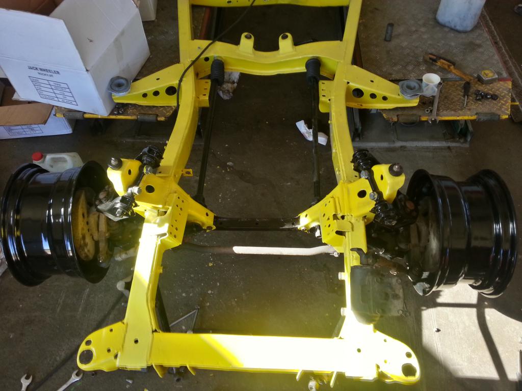 Aluksi purin auton jonka jälkeen runko hiekkapuhallettiin sen jälkeen sinkattiin sitten pohjamaalia ja kirkkaan keltainen pintaväri. Samoin muut alustan osat puhallettiin ja niihin vedettiin musta pulverimaali.