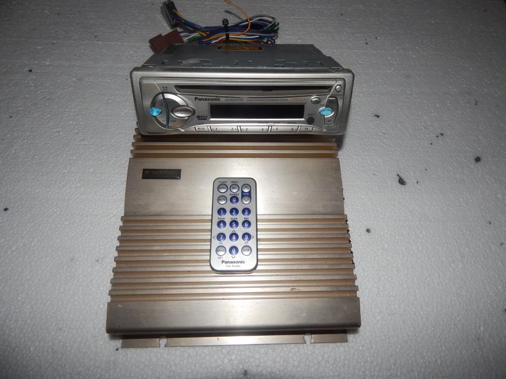 Panasonic cq-rdp472n mp3 auto cd soitin kaukosäätimellä sekä autostudion cb250lx champagne gold vahvistin.