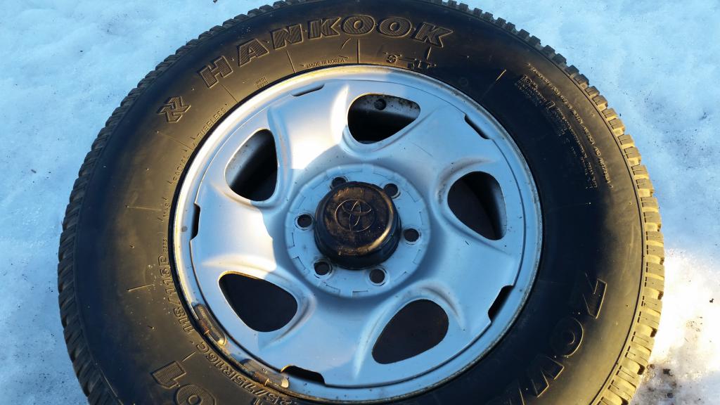 Hiluxin alkuperäiset hyväkuntoiset peltivanteet hankookin 225/75R16C nastarenkailla. Renkaissa on pintaa mutta nastoja vähän.