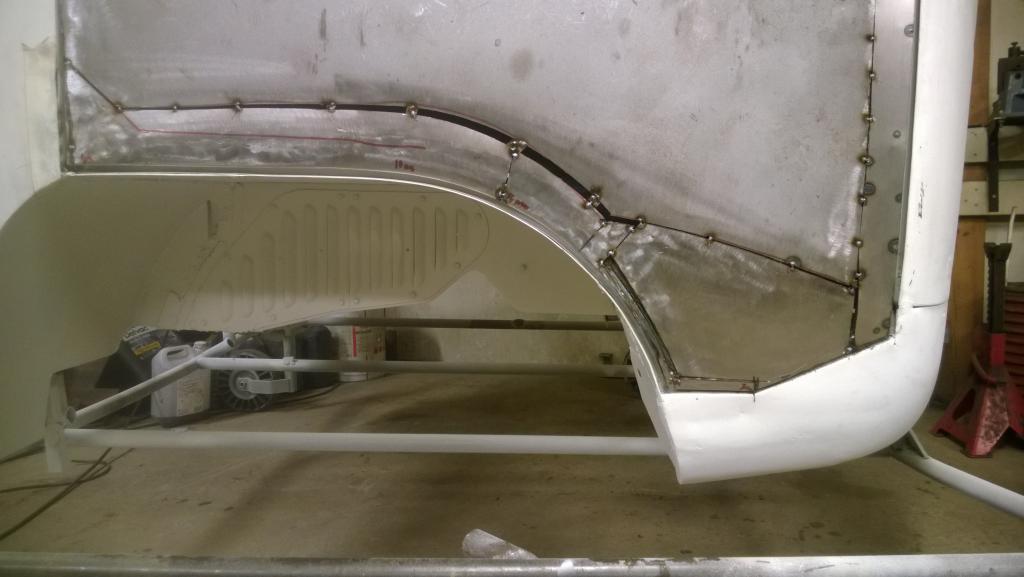 Vähän meinaa venyä nämä peltityöt... Kokeilin hitsattua vänkärin ovea paikoilleen ja eihän se kovin fiksusti