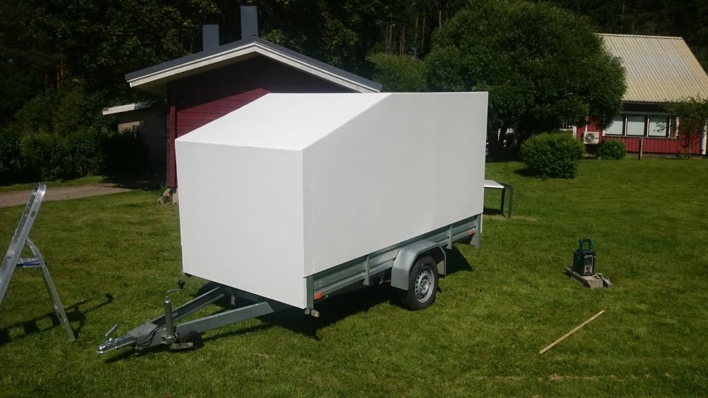 Tästä hyvä kärry mönkijän tai crossipyörän kuskaukseen. Tehty Aku peräkärryn päälle. Kopin mitat 300x150 ja sisäkorkeus 165cm.