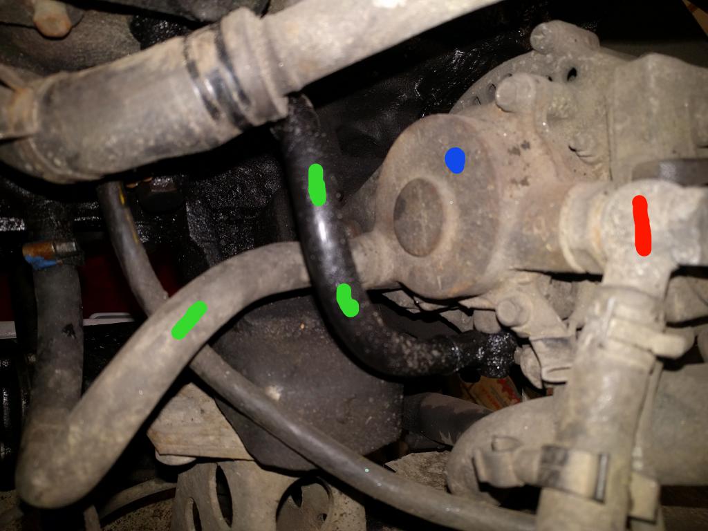 Tietääkö joku Läjän (-86, tekniikaltaan vakio) laturin takaa lähtevien letkujen tarkoituksesta? Lohkolle menee pari öljyletkua (kuvassa vihreät) ja sitten punainen "letkupari" menee jonnekin apparin puoleisen akun alle. Mikä on näiden tarkoitus? Sinisellä merkitty mötikkä laturin takana,johon kaikki letkut on liitetty, on nyt ilmeisesti sitten jonkinlainen pumppu? Kakkos kuvassa näkyy hieman paremmin nuo liitokset tuonne lohkolle. Kahdella vihreällä viivalla merkitty ilmeisesti painepuoli öljylle ja letku kovettunut ja halkeillut.