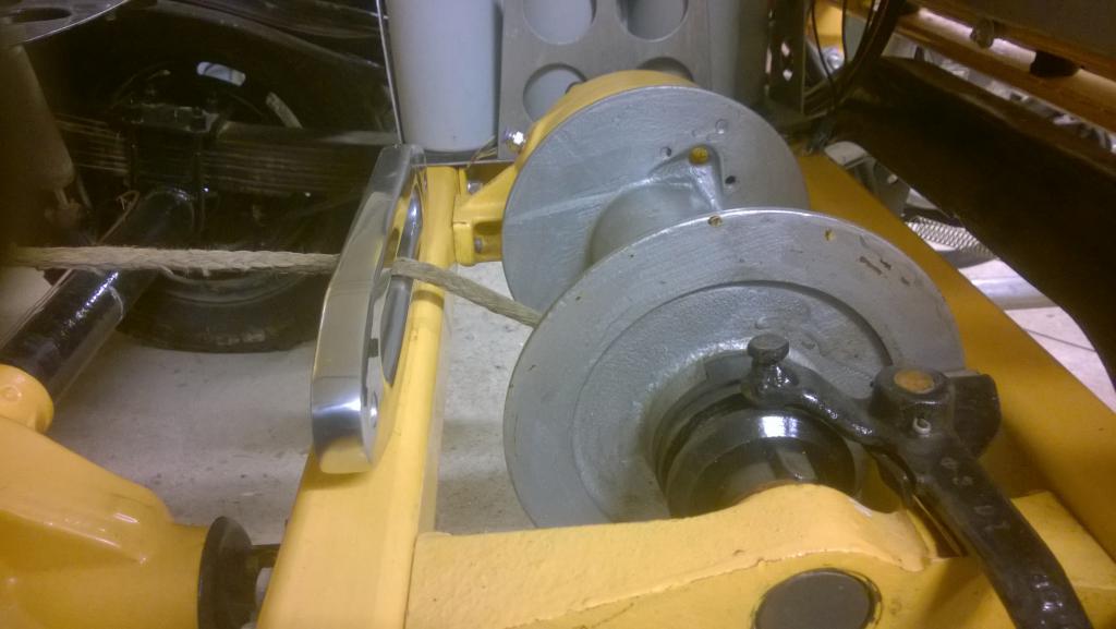 Tuohon pyöreän runkopalkin alle pitänee laittaa leveä kita että puolaa narun tasasemmin rummulle. Parempi oli tilan puolesta