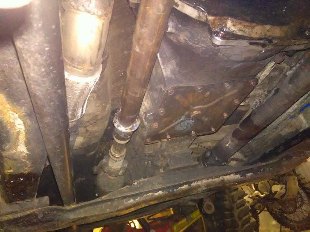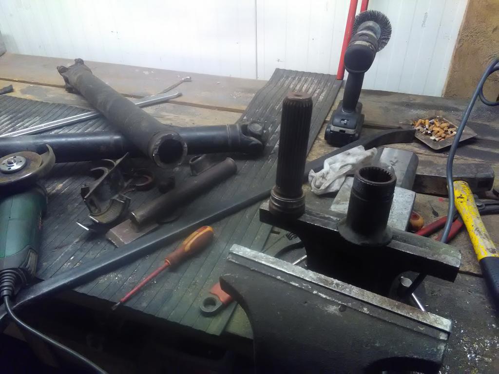 Pyörän laakerit kiristin edestä. Vinssin kardaanin tein. Liuku BMW kardaanista. Vähän paksummalla putkella nyt, ahdasta tuli mut toimii. Alipaine pumpun öljyn paluu letku kulkee vähän liian lähellä kardaania. Uusi 10mm 25metrinen vaijeri paikoilleen. Coolerin laitoin kiinni, aikaisemmin maannu moottorin päällä putkien varassa. Hitsasin runkoon vielä kolme paikkaa ja koriin yhden vaikka niitä reikiä ei pitänyt enää olla. Pohja panssari hardoksin paloista aloittelin tekeen.