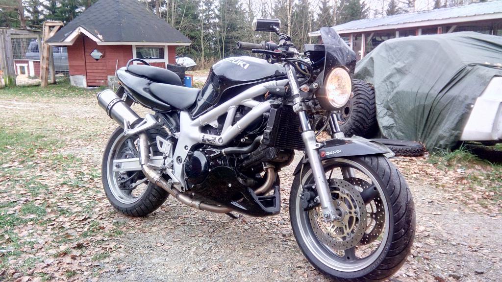 Elikkäs V 2 moottorilla oleva Suzuki. Mukavasti vääntää ja helppo ajaa. Olen vaihdellut renkaita ja jarrupaloja sekä keväisin öljyt ajokauden alussa. Entisen omistajan mukaan pyörässä on suutin sarja. Säätö ilmeisesti pielessä kun 6 vaihteella kaasuttaessa alkaa röpöttämään. Ei ole tavan ajoa haitannut joten en ole alkanut säätämään.Vilkuista joku poltin näköjään palanut kun vilkuttaa nopeasti. Ajettu 83 tkm. Hintaa ois 1300€