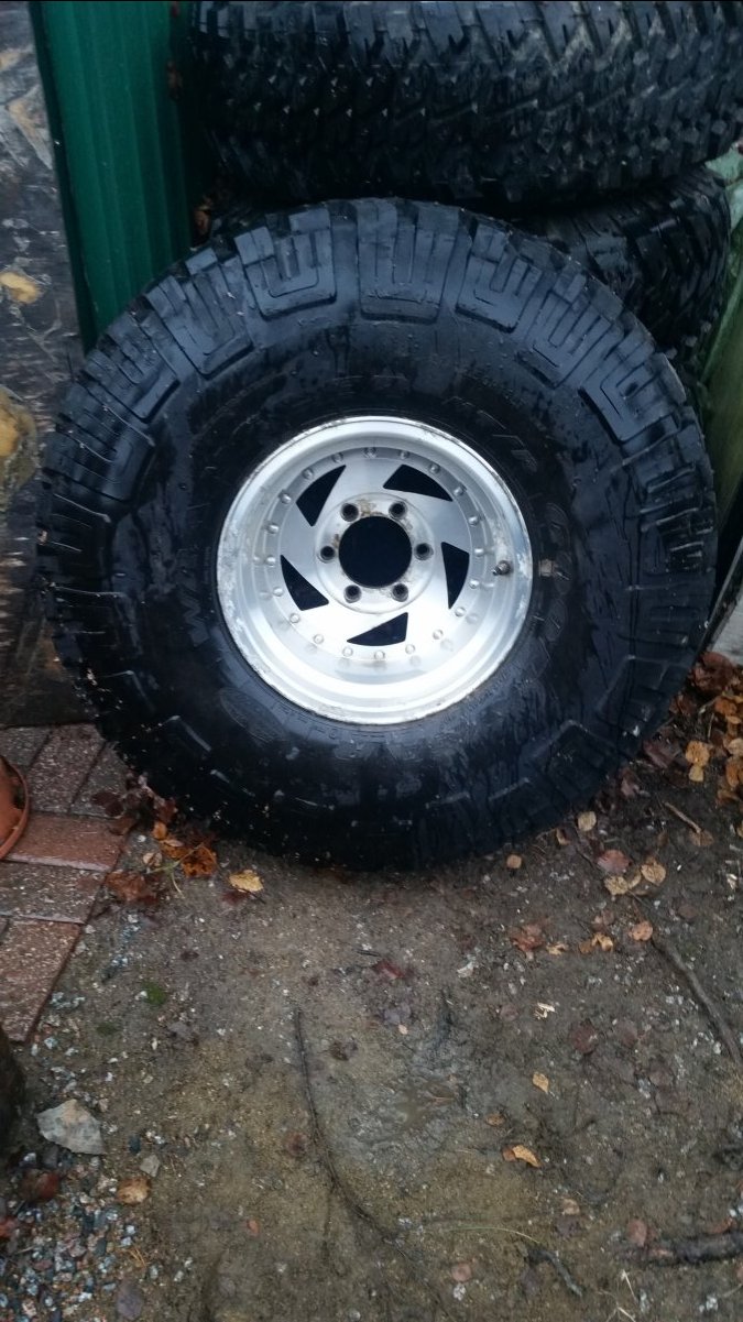 Myydään maasturin nastarenkaat 10x15 aluvanteilla,pulttijako 6x139,7 offsetin puolesta sopii hj,bj yms..?