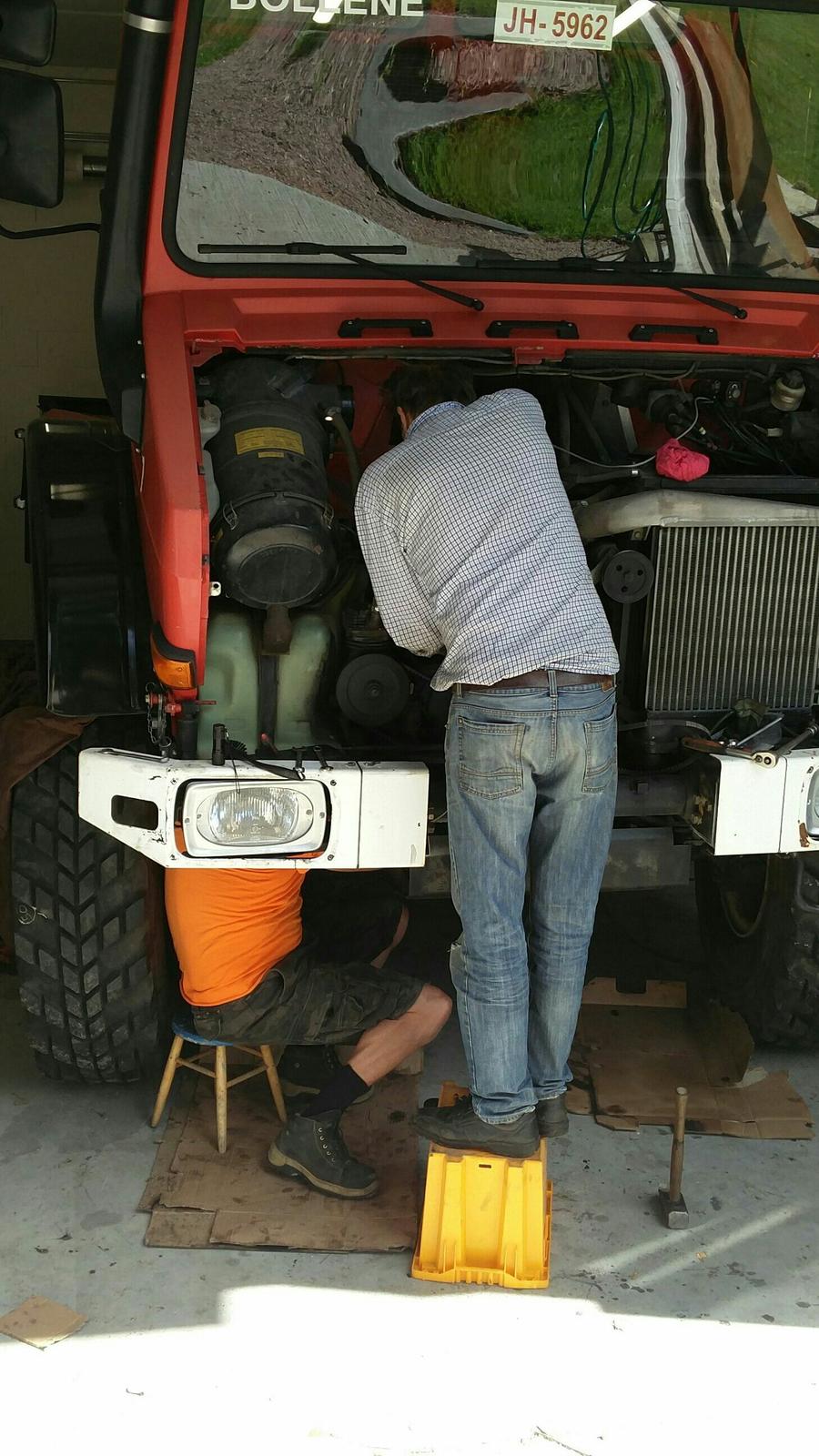 Normaalisti auto ajetaan montulle tai nosturille remonttia varten. Mogin kanssa näköjään otetaan jakkara ja mennään istumaan auton alle