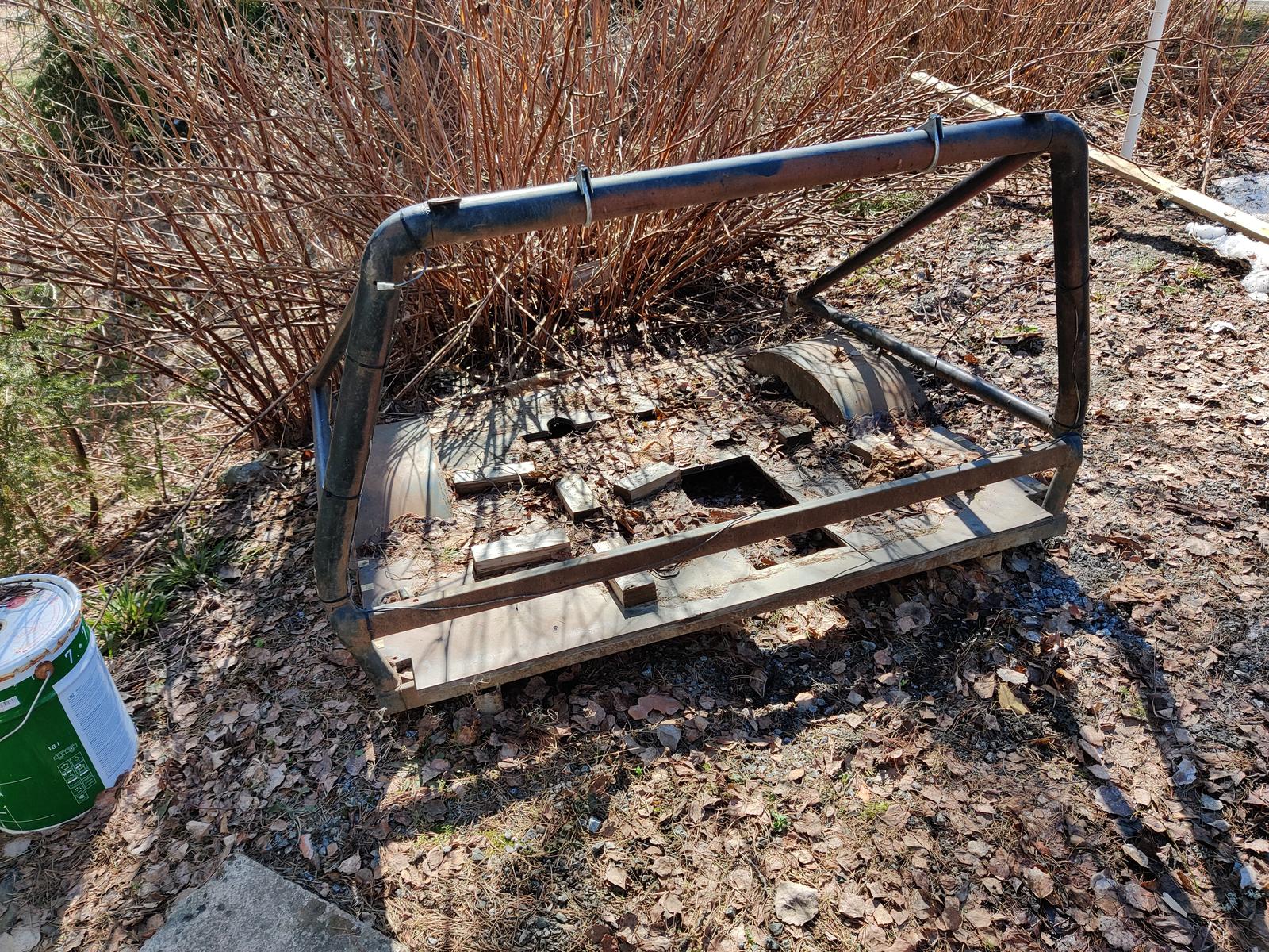 Autosta purettu ja talven pihassa maannut flatbed. Jos jollain tarvetta saa hakea pois