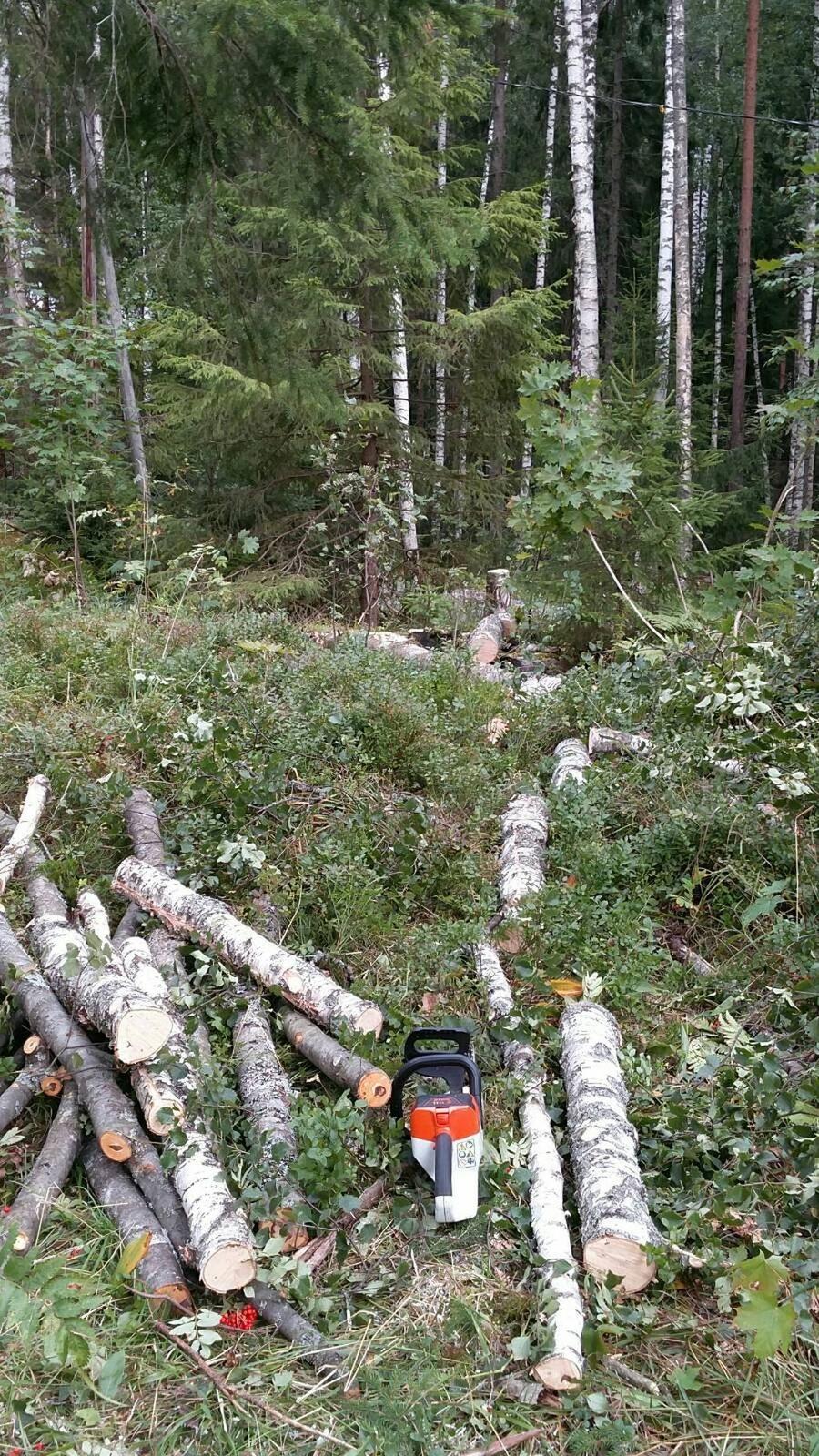 Loppukesästä kundin (Maken) kanssa poistettiin muutama sähkölinjaa uhkaava puu. Vielä oli kultahampaissa purua jäljellä. Viimeisessä kuvassa oma suosikkityökaluni Stihl MSA140 patterisaha. Painaa vain 2.6kg. Keveytensä johdosta hyvä peli karsinnassa. Raivaus tyyppisessä hommassa missä joutuu välillä vetelemään rankoja hyvä ominaisuus kun ei papata jaloissa.