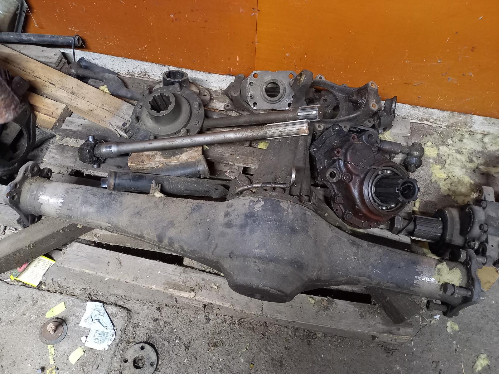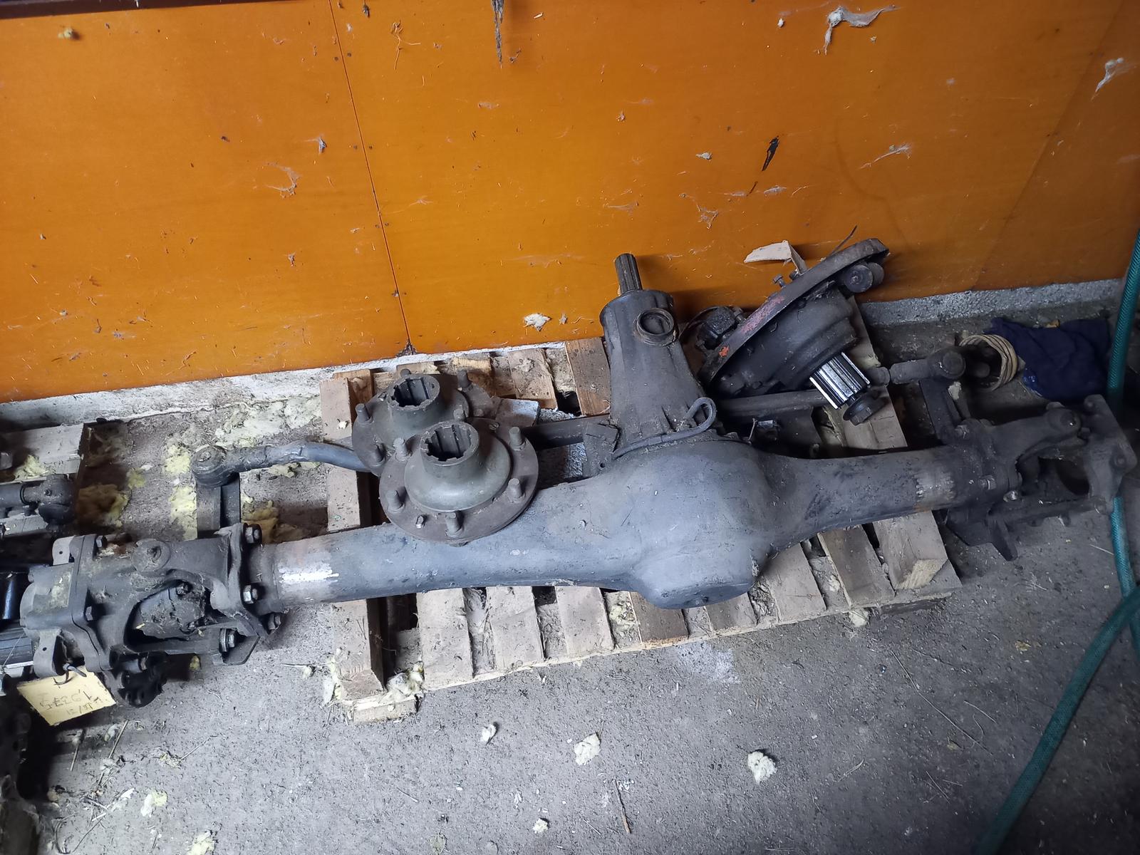 -Toisessa kuvassa oleva leveä etuakseli missä akseliputki, perä, vetoakselit ja jotain kääntönivelen osia. Halutessa kuvassa oleva risa porttaalipoxi mukaan.
