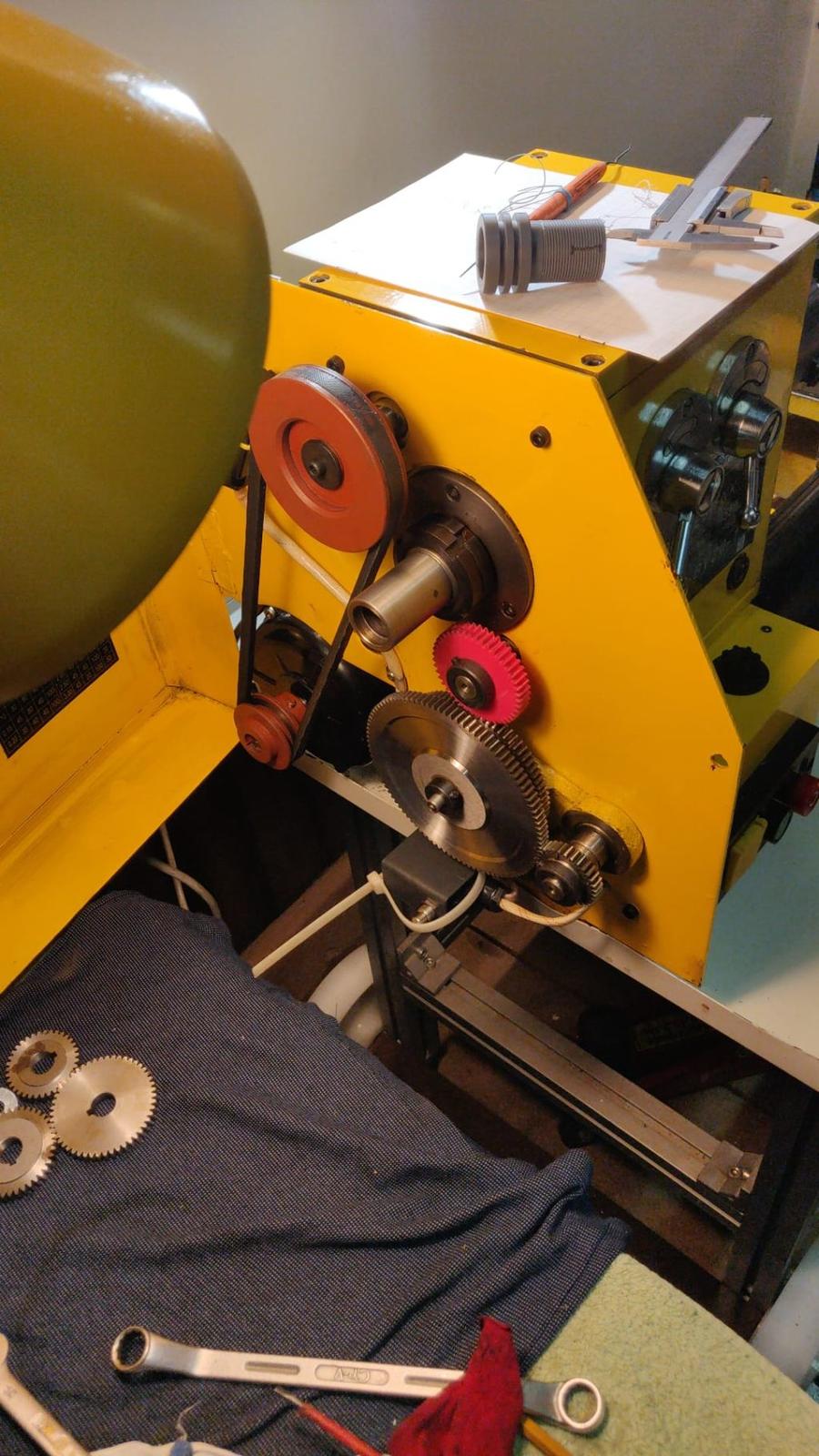 Seuraava yllätys oli, että kiinan luetteloissa on miljoonittain rattaita ja aihioita, mutta 45-hampaista MOD1.25 ratasta ei löytynyt missään konfiguraatiossa. Tähänmennessä oli jo selvinnyt, että tämä Power Craft on teknisesti sama laite kuin Bernardo 500 sorvi. Eikun kyselemään varaosia sieltä. Yksittäistä ratasta ei ollut saatavilla, mutta koko sarja kyllä löytyi. Sattui lompakkoon, mutta lopulta olikin positiivinen yllätys. Tässä sarjassa oli mukana myös rattaat tuumasille nousuille.