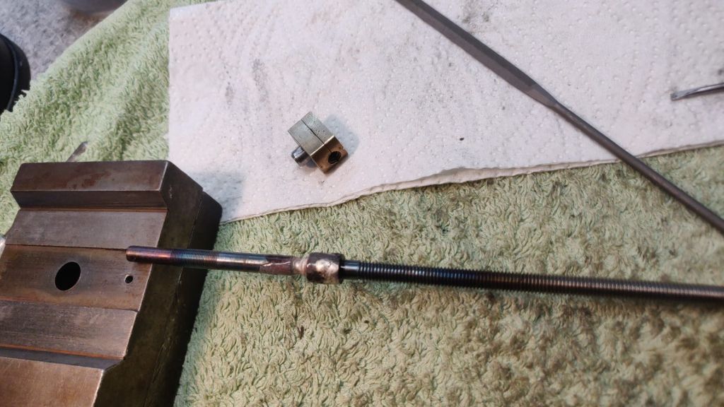 Plan B. Holkki kovajuotoksella akseliin kiinni ja laakeri mittoihin. Toimii tällaisena hyvin vaikka jotain osia tuosta veivin ja laakerin välistä selvästi puuttuukin. Siinä ollut alunperin jonkinlainen välyksen säätö.
