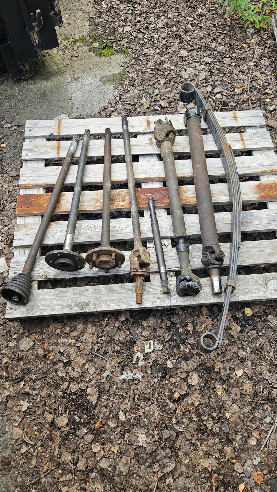 Moottori nostettu pois keulilta. Yks setti akseleita löytyy myös. Ruosteettomat tukivarret kiinni.