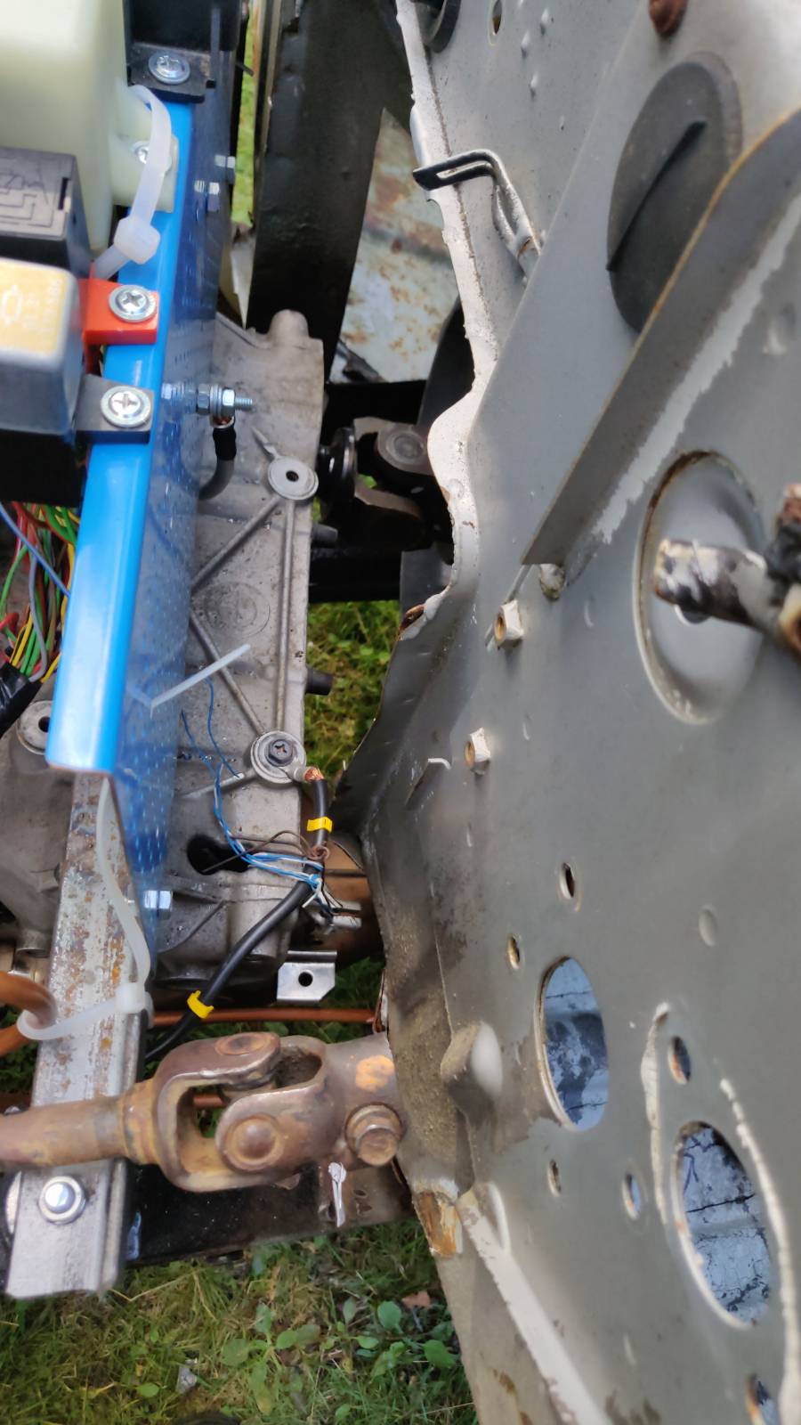 Tästä se lähtee. Paikoitellen löytyi tervettäkin peltiä. Hyppyytti muuten aika monta kertaa Jameksen hyttiin ja takaisin. Muutenkin mielenkiintoinen kokemus laskea hytti yksin paikoilleen. Oivallus oli laittaa muoviputken pätkä jakolaatikon kepin päähän ja ohjasnarut koriin millä pystyi Jameksen hytistä kääntelemään koria.