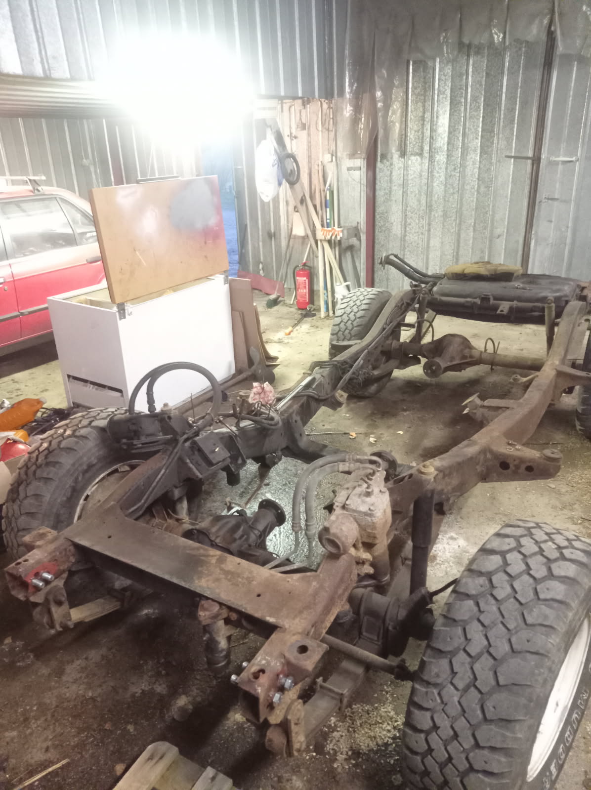 Tosin yllättävän vähän siitä on tarvinnu mitään irrottaa, uskomattoman simppeleitä nää yli 40 vuotta vanhat "traktori" tyyppiset maasturit.