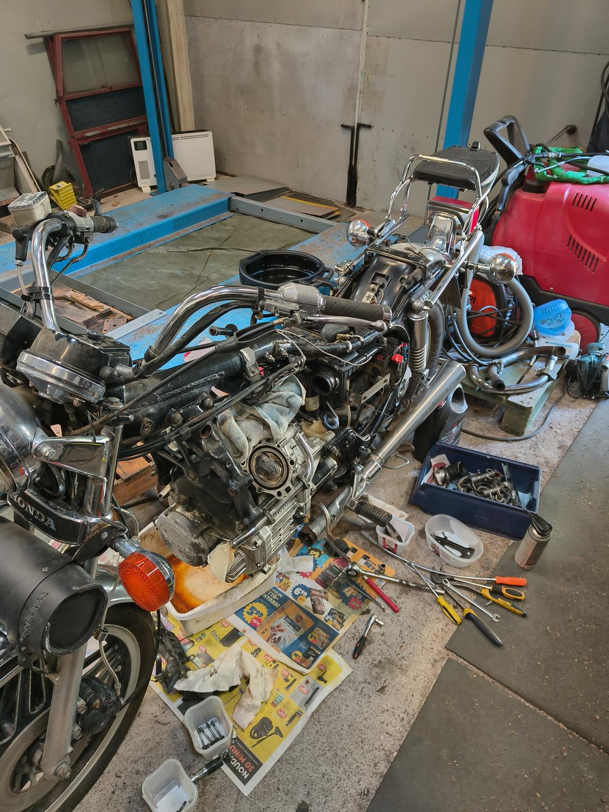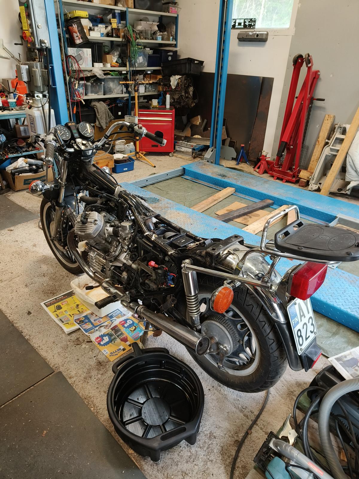 Ton vanhemman Hondan kansipahvihomma ollut jo aika kauan tarkoitus ottaa työn alle, mutta muutama vuosi kerkes vierähtämään ennen kun tuli nyt alotettua. Eli penkki, syylari ja tankki irti ja kaasarit ym härpäkkeet ympärilta ja kannet irti, no molemmilta puoliltahan se oli antautunu pahvit.