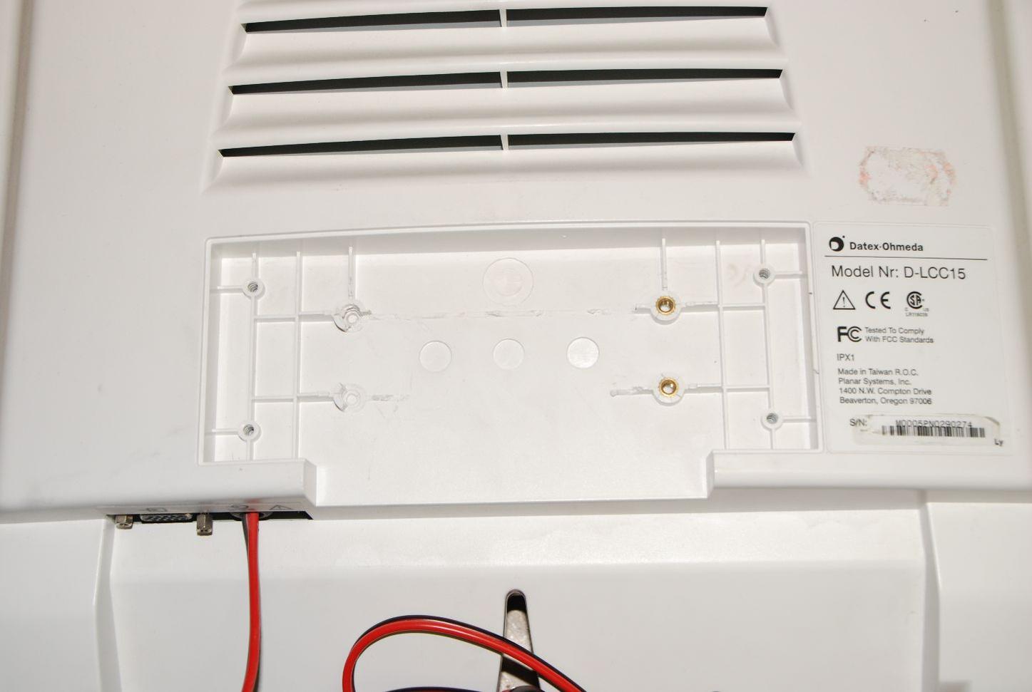 Jostain anestesialaitteesta peräisin oleva näyttö. Toimii 12v, eli ideaali autoon laitettavaksi. Vga-liitännällä. Resoluutio taisi olla 1024x768