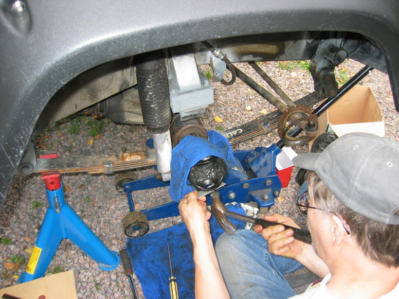 Uuden olkalaakerin paikoilleen naputtelua..