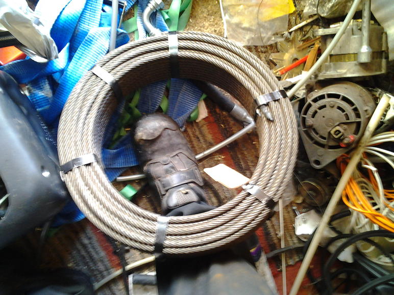 10 tai 11mm hissivaijeria uutta! Luulis olevan kertoimet kohallaan kun ihmisten nostoon tarkoitettu. hyvin ainakin mulla kestäny. Parin vinssauksen jälkeen oppii menemään rummulle.