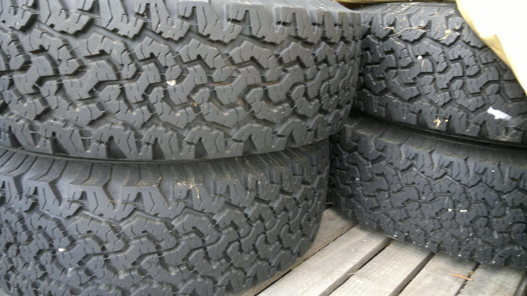 BF Goodrich All-Terrain T/A KO LT245/75R16 ja Dotz Dakar 7x16 Jako: 5x114,3 Et: 13 hopeiset teräsvanteet hintaan 500 euroa.