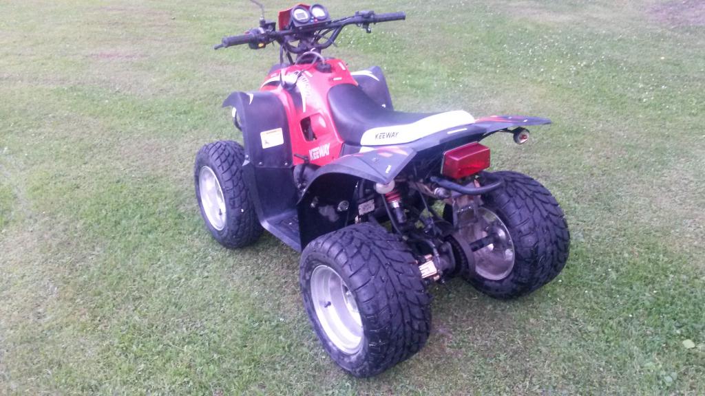 Keeway Atv 50 -09 Tieliikennemönkkäri tai 50(70cm?) PihamönkkäriMyydään Jäi ylimääräseks tollanenkin keksintö, pakillinen malli. Mukaan sais tollasen nastotetun Crossirengas sarjan. Ajettu 2200km ja toimii ihan ok, kulkee 55km/h omaan mittariin kun kävin testaamassa. Kilvet vietiin konttorille kun ei käyttöä tytöllä tullukkaa. Saa kuitenkin heti kilpiin. HP 700€ kun taitaa noi renkaatkin jo muutaman satkun kustantaa,,,Ari/0505844002 Myydään