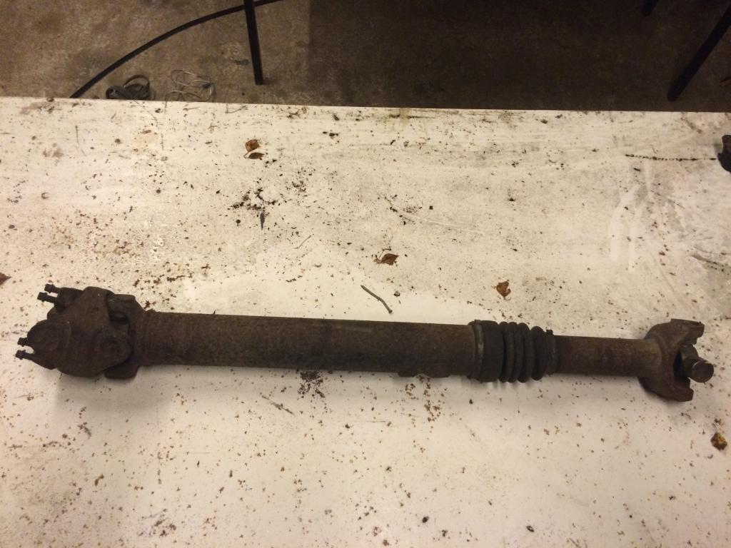 kuvasta ei puutu mitään osaa, molemmissa päissä oli vain yksinkertainen nivel, ei tuplaniveltä. tuo pelttiklipsu kiinnitys kyllä vaikuttaa tosi hataralta... mittaan huomenna tuon taaemman ristinivelen (tai mitä siitä on jäjellä).. |