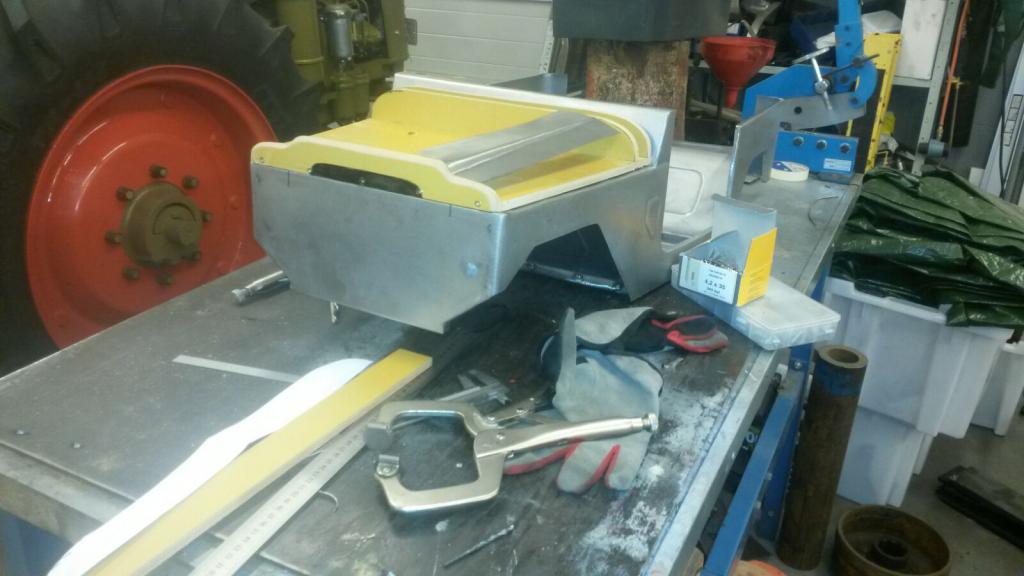 vanerista tuli ns. muotti ja konepellin nokka muotoiltu erikseen. kolmesta osasta joutui tekemään ja vähän tikkiliimaa sekaan. hämmentää itseäkin kuinka ammattilaiselta pelti taipuu. ei siis itseltä...