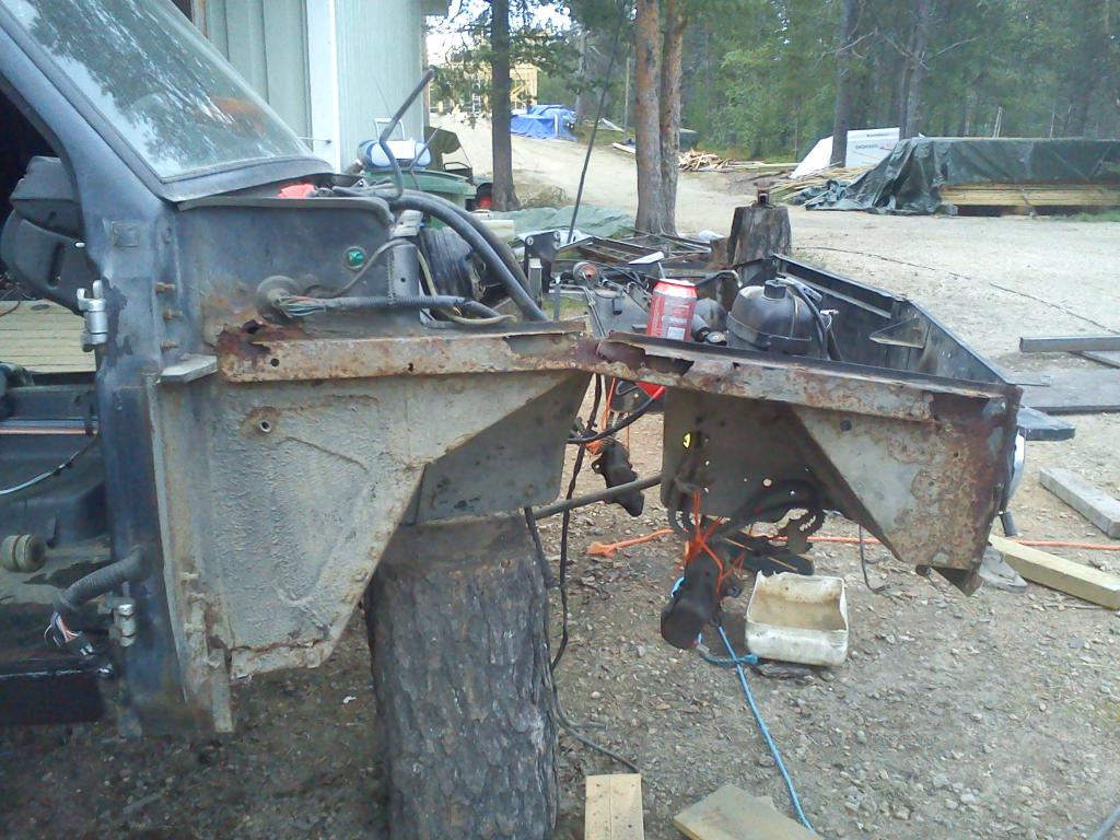 Classic Range -88 "ORange"No jaa jokohan tämän tohtisi tänne lisäillä... Ollu nyt pari vuotta pressun alla projektina mutta savut otettu tänä vlk. Kaikki lähti siis pompautuksesta katsastuksessa, Kaikki muuten kunnossa ja olis menny läpi mutta pohjaanlyöntikumi oli ruostunut irti. No sitä sitten paikkaamaan. Ei aikaakaan kun kori oli pois rungolta, akselit tallissa ja sisukset purettu, 35" sovittelu, jne... lähti käsistä. Kuvia ei ikävä kyllä orginaalista ole mutta rojektin varrelta kuitenkin.