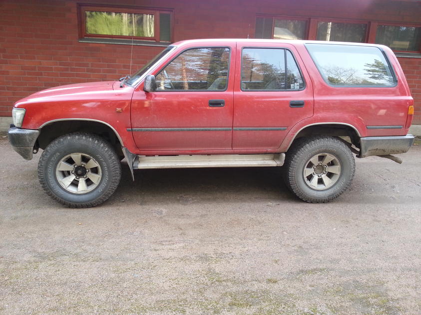 Toyota Runsteri....auran värkkäystä...Juup olis tarkoitus tehä tosta runkusta pieni projekti kun ei oikein oo täs nyt muutakaan tekemistä ja sormet syyhyää jo vähäsen... Autohan on ainakin omasta mielestä makeen näköinen muodoiltaan jo näinkin mutta pientä tuunausta voi aina toteuttaa. Tarkoitus olis maalata uus färi pintaan, laittaa vinssi ainakin nokalle ja tehä jonkinlainen karjarauta/vinssipuskuri, jonkinlaisia lukkoja mietiskellä, joko arbit tai truetracit. Tarkoitus olis pitää rengaspuoli melko maltillisen kokoisena ettei ala voimansiirto porsimaan, eli jotkut karkeat 31". Tarkoitus olis pitää vehje ajokunnossa talven yli niin mitään isompaa nyt heti en ala tekeen mutta jotain pientä aina kun kerkee. Saako suomesta jostain runneriin bushwackerin levikkeitä ? Tietääkö joku kertoo että minkälainen keskuslukon ohjaus tässä on, laitan kauko-ohjauksen tähän niin mikä on helpoin tapa. Ja jos jollain olis fiksun näköinen etuvinssipuskuri hässäkkä niin saa laittaa kuvaa. Tojotista en mitään tiä niin neuvoja saa ja pitää antaa