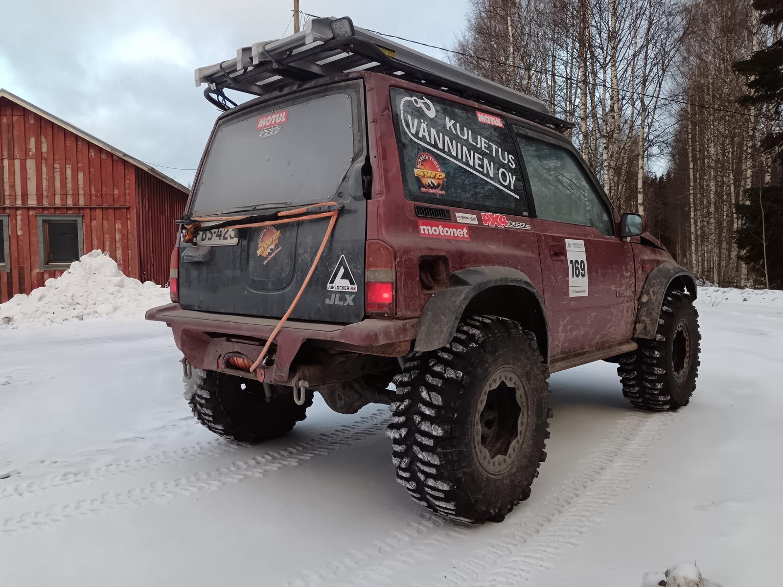Suzuki Vitara 1.6 1995 "offroad edition"Myyty Siitäpä myyntiin vähäisen käytön takia valmiiksi rakenneltu auto, vaikka offroad suunnistukseen.Kuvat kertoo paljon ja kysymällä sitten lisää. Paineilma lukot edessä ja takana. Vinssit naruilla edessä ja takana. Panssarit pohjassa ja palkit helmoissa. Vahvemmat vetarit edessä ja välitetty laatikko, kulkee tarvittaessa hitaasti. Alla 33" ja mukaan tulee leimarenkaat vanteineen. Leimaa kevääseen ja lisää saa konttorilta. Edellisen katsastuksen jälkeen ajettu alle 1000km. Jonkun verran varaosia mukaan ja ostajan niin halutessa edullisesti toinen lähes täydellinen Vitara varaosiksi. En myy mitään osia erikseen. Vaihdossa voin ottaa halvemman vähemmän rakennellun maasturi tai halvemman tai kalliimman harraste jenkin. Tosi ostajalle voin auton käyttää katsastuksessa mutta sitten ei hinnasta tingitä. En tarvitse juttukaveria joten elä kommentoi tai ota yhteyttä jos et oikeasti ole ostamassa. Hp. 6900€ 0443394943 Myyty Viimeksi muokannut vannika : 11.04.2025 11:04 |