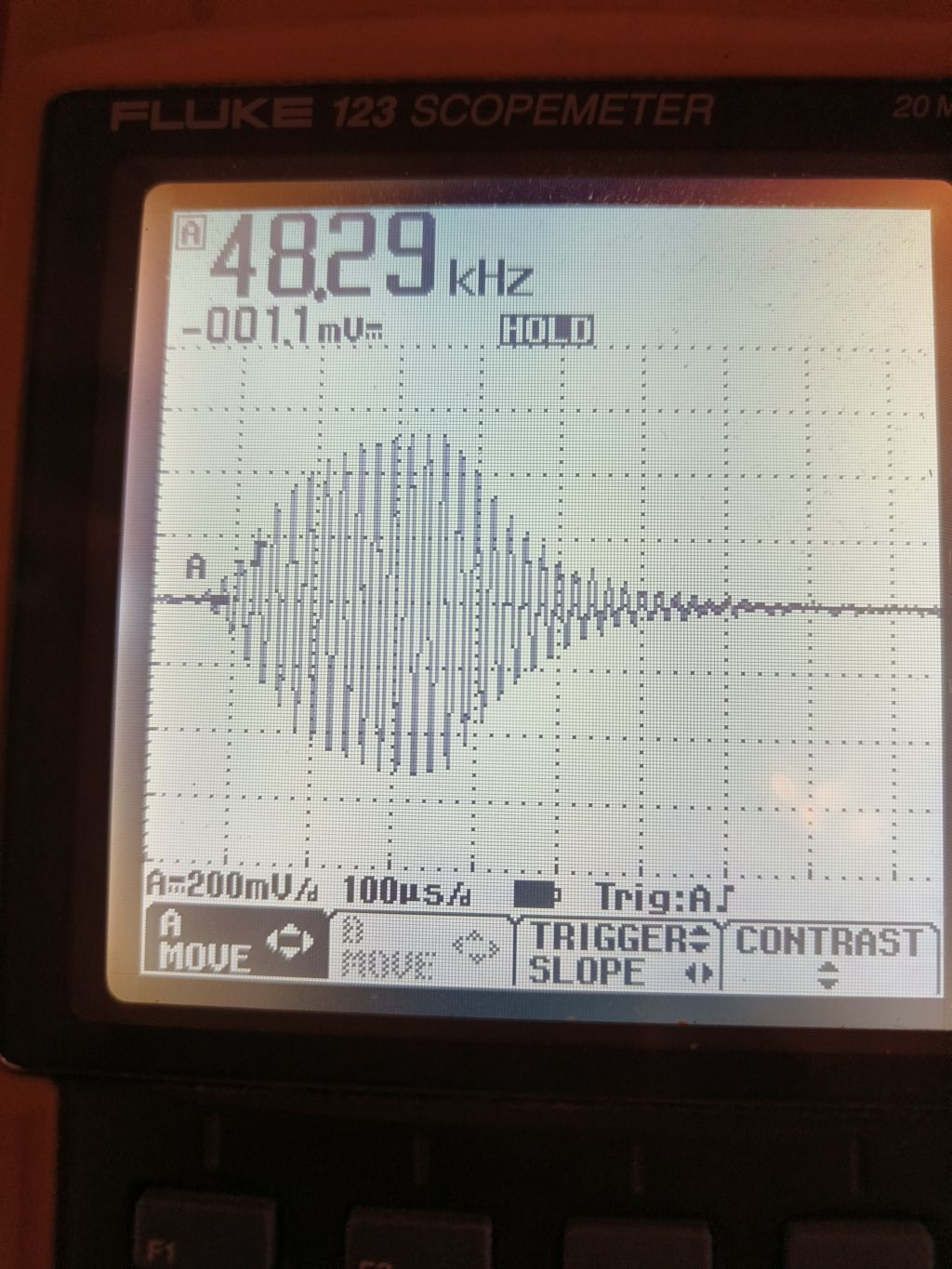 Risaa anturia tutkittaessa tuli mieleen tutkia erikseen siinä olevan trensduucerin (piezo elementti) kunto ja toiminta. Anturia naputtamalla elementistä irtosi helposti yli 20V jännite.