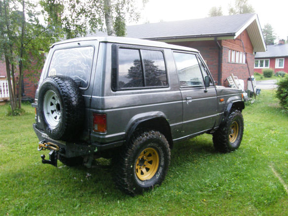 Vaihdossa kelpaa Suzuki Vitara tai vakio Pajero (pitkä tai pätkä) vuosimallilla ei väliä, niin ja laadukkaat sähkövinssit ja vähintään 14" leveät 35 tuumaset renkaat 15" vanteelle. Viimeksi muokannut Janex : 27.01.2010 23:47 |