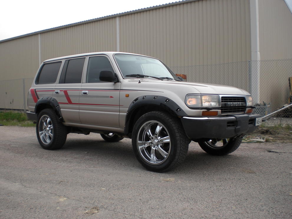 HZJ80 1990Tommonenkin tekeillä ja ajoautona jo tällä hetkellä, hankittu kansi halkinaisena ja konetta vaihdeltu ja levikkeet tuli ruuvattua, niin pysyy kumitkin kaarien sisäpuolella. Katoin kuitenkin taas kerran parhaaksi hukata noi 16" alut, ja korvata ne noilla fab5 pyörillä... Helvetin asialliset levikkeet, asentaa noin tunnissa ja kun heivaa ne kiinalaiset reunakumit vittuun ja laittaa mustaa sikaa teipaten muutaman millin levyisen sauman siihen liitoskohtaan niin tulee ihan hyvännäköisetkin.