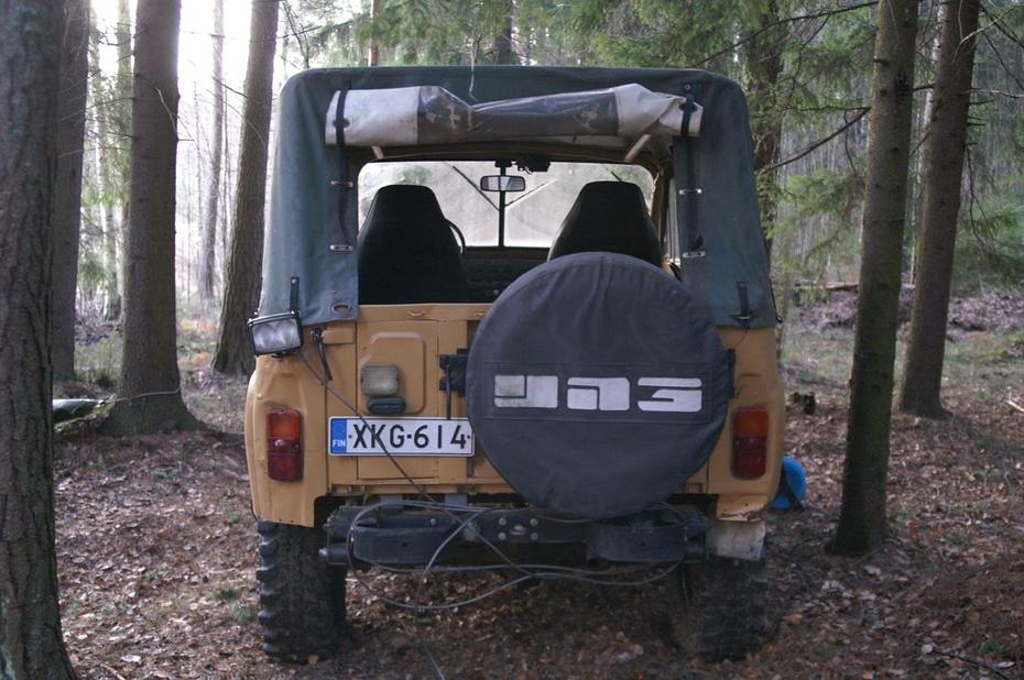 - Vieläkin hienompi (äitin tekemä) vararenkaan suojapussi, UAZ tekstillä.