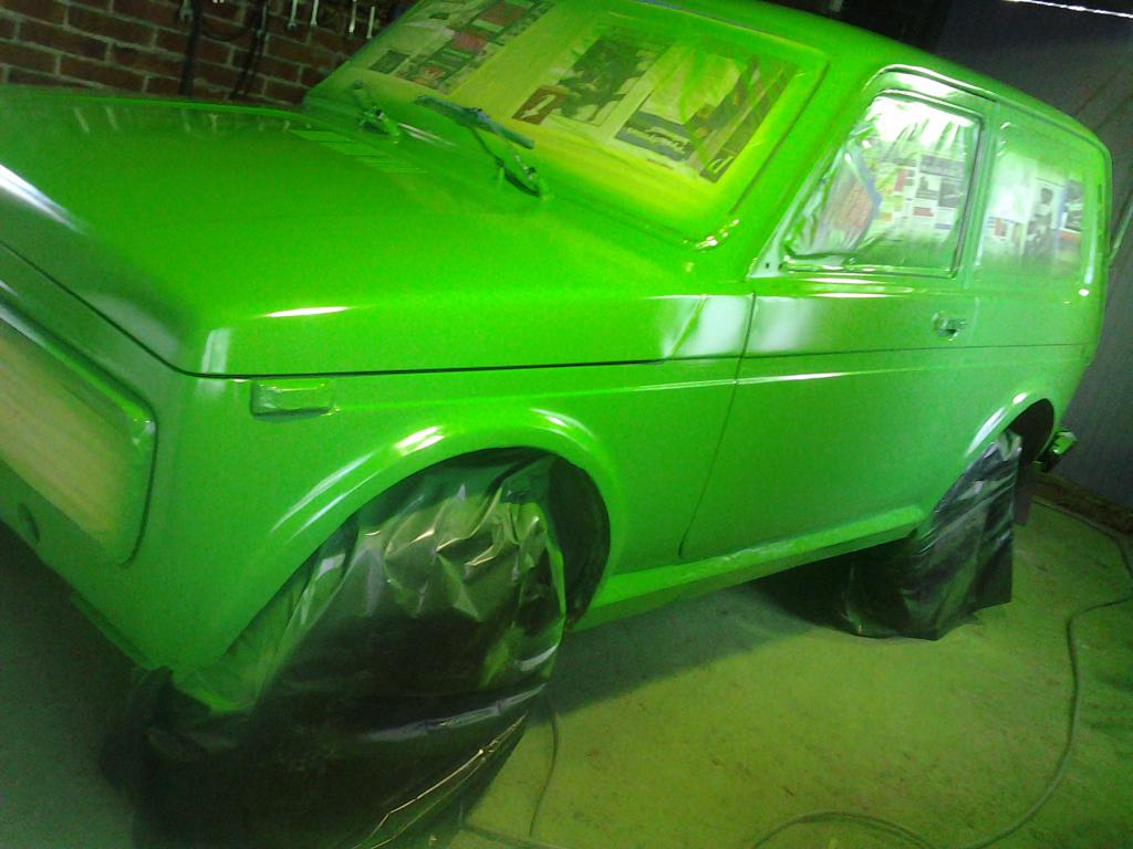 Vihreän kullan perässä... (Ladan ehostusta)Nyt kävi niin että Hj osoittautui hieman turhan suureksi projektiksi mulle---->kiertoon, ja sopivasti tuli uus maastokulkine vaihdossa tilalle. ![]() Lada Niva -87 1,6l koneella 5-vaihteinen laatikko... Katsastettu ja kaikkee... Maasto-ominaisuuksien osalta orkkiskunto, mutta joku edellisistä omistajista on tykänny siirrellä ja vaihdella valoja. Etuvilkut siirretty puskuriin, takavalot on jotkut fiat unon takavalot. Tullessaan mulle auto, oli aikalailla kirjava, peltihommia oli tehty, mutta maalaukset oli jääneet heikommalle. Tähän mennessä tehtyä: Perushuolto ja pienet kittailut/maalailut. Korottamista siihen olen suunnitellu, vähän palkkihelmaa, yms. Kuvat ennen ja jälkeen. Eikös ole aika pirteä toi uusi väri?