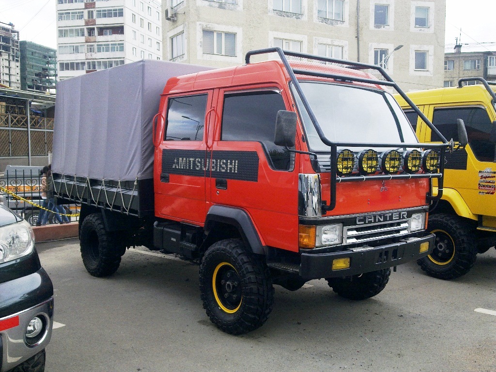 Kalustoa Ulan BataaristaTerveiset Mongoliasta! Päiväkäppäilyllä kävelin jonkinlaisen paikallisen automyyntitapahtuman ohi ja tuli räpsittyä Nokialaisella muutamasta mielenkiintoisesta yksilöstä kuvia. Täällä onkin melkoisen paljon 4x4 kalustoa (Ja ihan syystä). Ohessa pari Mitsun 4x4 Canteria.