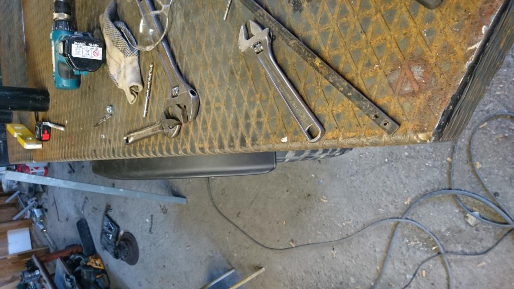 Jostakin syystä tää käänteli noi kuvat väärinpäin viimeks... Jos ny menis paremmin. Eli ny ois lokarit soviteltu ja valojen paikat porattu. Taakse tulee tollaset pitkät ledit ja kylkiin keltaset led äänivaltaa. Seuraavaks lava lähti hiekkapuhallukseen ja pohjamaalaukseen