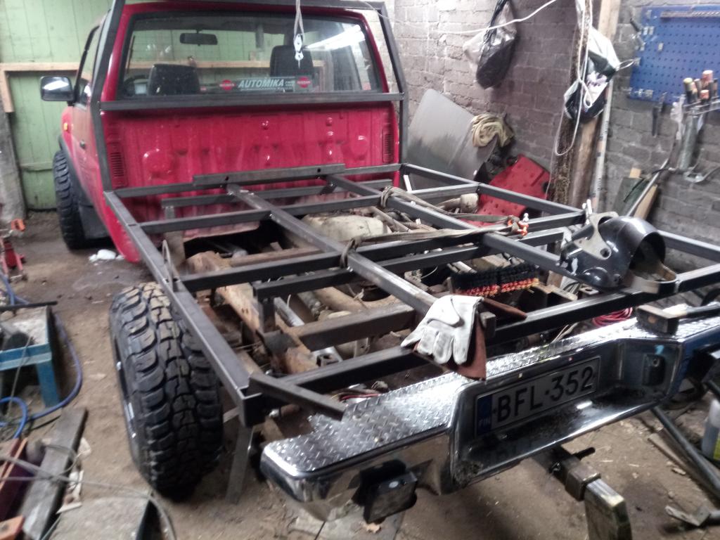 Sit vähä vetokoukuntekoo.runko 70rhs ja putki mihin toi irotettava osa menee on 60rhs ja irtoosa 50rhssää. Suunnitelmatki hiukan vaihtu ja tulee flatbedi suoraa ni voi olla et runio nousee viel vähintää 130mm
