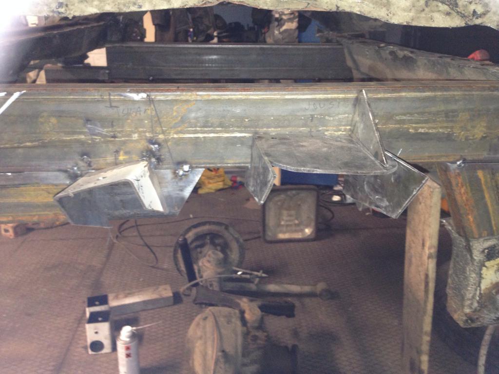 Hiukan vähemmän oksidoitunutta etulattiaa tässä koetetaan hahmotella, alla poikittaispalkki joka samalla kiinnityspiste korin ja rungon välillä. Osu sattumalta kulmatkin ihan kohdilleen perstuntumilla.